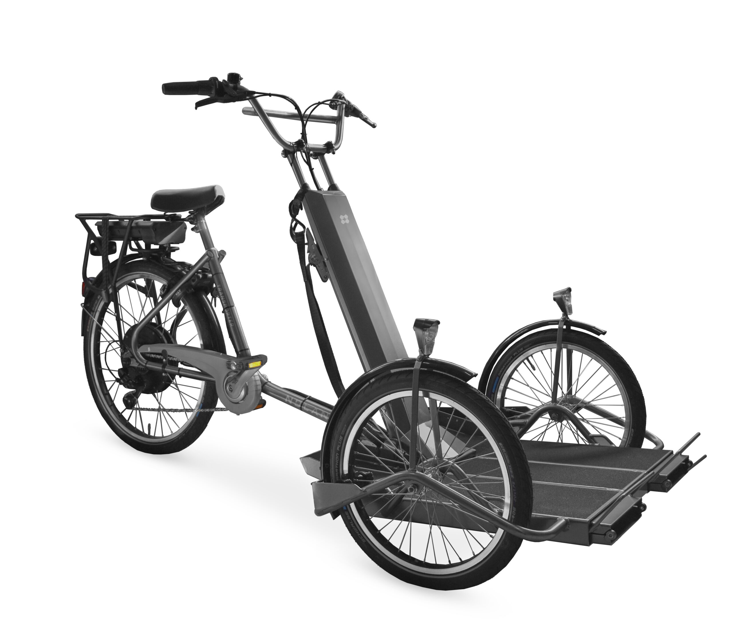 Le vélo-fauteuil roulant est un tricycle doté d’un chargeur frontal pratique auquel on peut facilement attacher un fauteuil roulant. Cela permet de transporter une personne en fauteuil roulant en toute sécurité et confortablement, tandis que la personne à l’arrière pédale et dirige le vélo. Le vélo offre une expérience de conduite stable et fluide, grâce à sa construction robuste et à sa direction intuitive. Idéal pour les soignants qui souhaitent emmener leur client en balade à vélo.